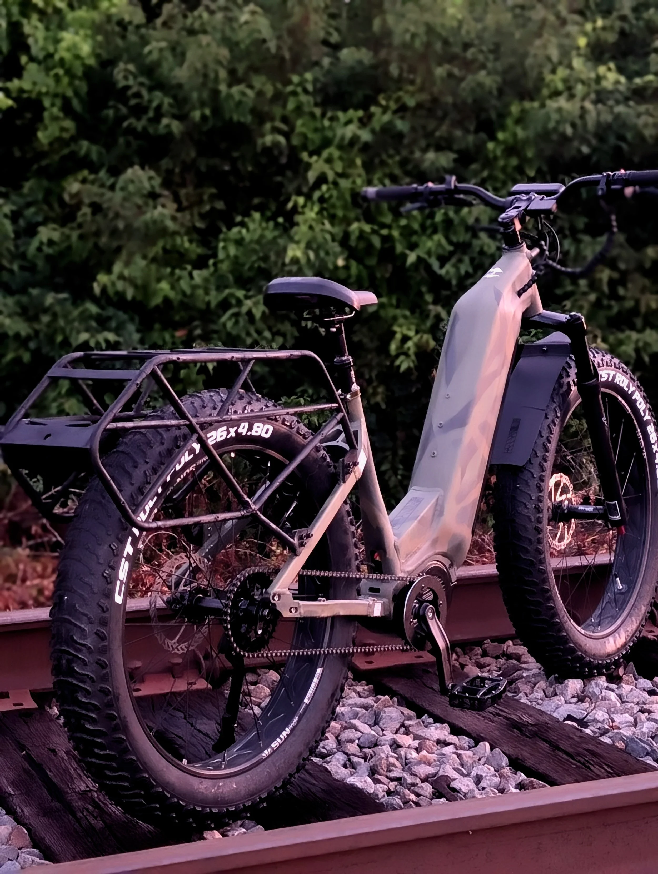 · Our new custom rear rack with tons of accessory options and built in towing hitch and fender built in.